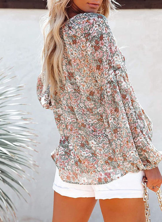 Naturlux - Lässiges langärmeliges Top mit V-Ausschnitt