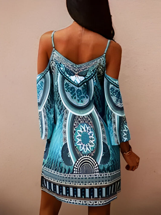 Daisy | Trägerloses, ärmelloses, böhmisches Tunikakleid mit V-Ausschnitt