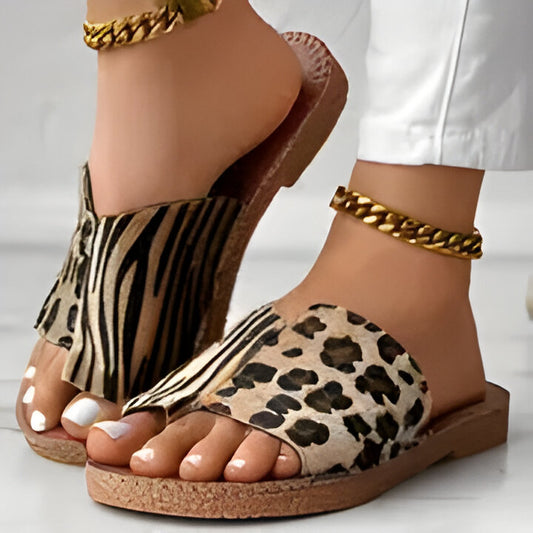 Magnolia | Schicke zweifarbige Gleitsandalen mit Leopardenmuster für Frauen