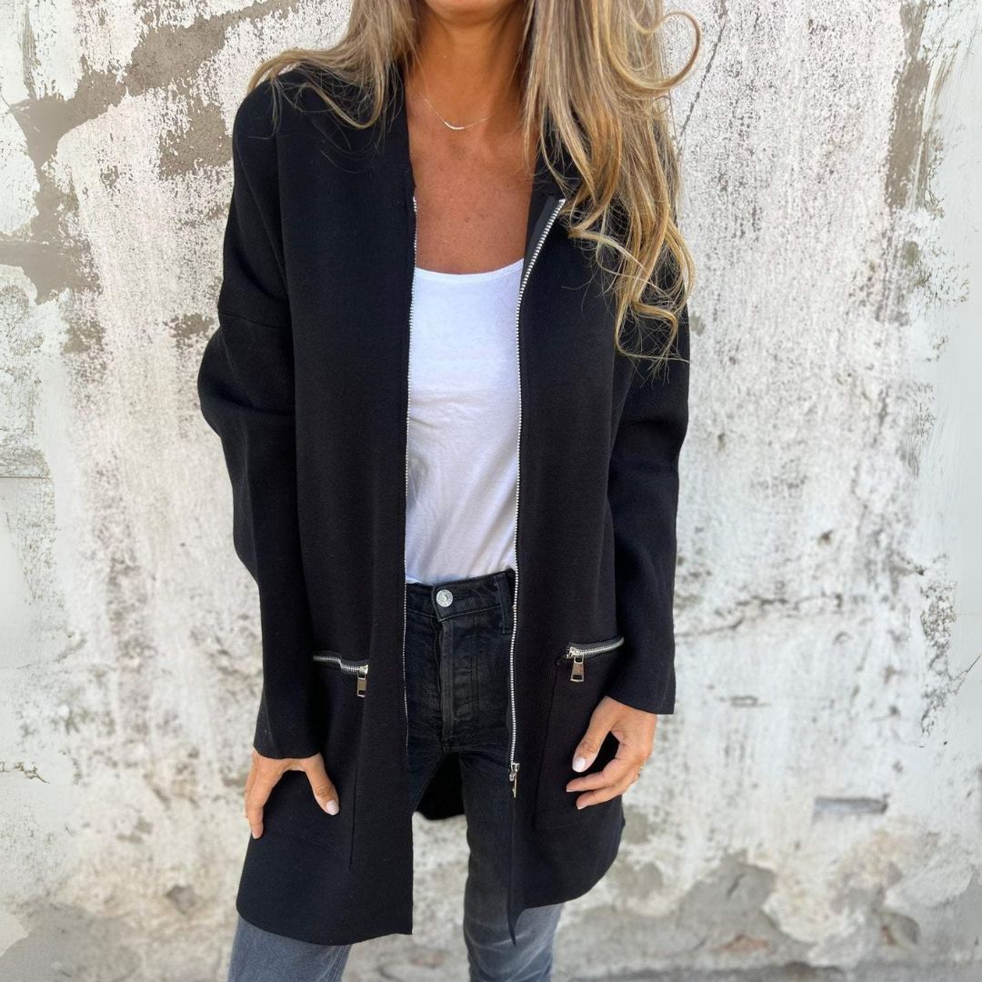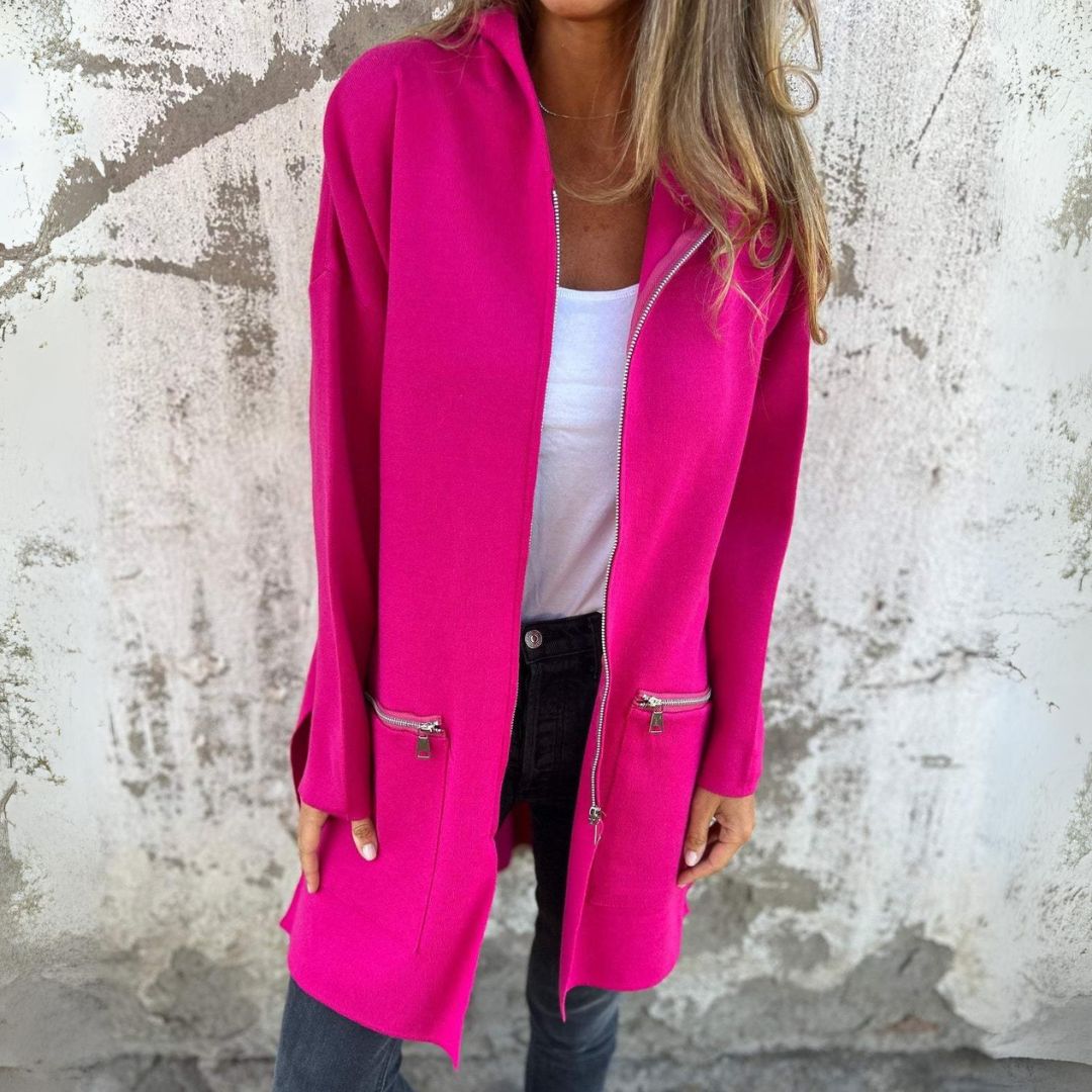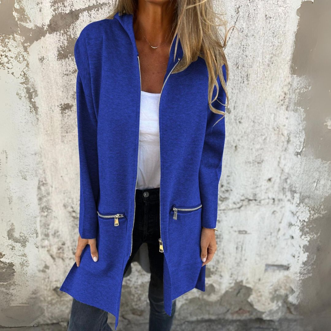 Adelle - Langer, warmer Mantel mit Reißverschluss und Kapuze