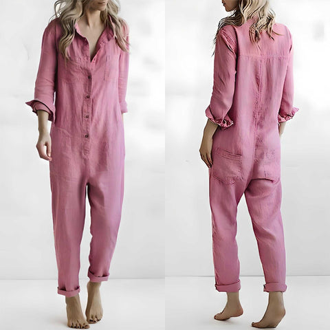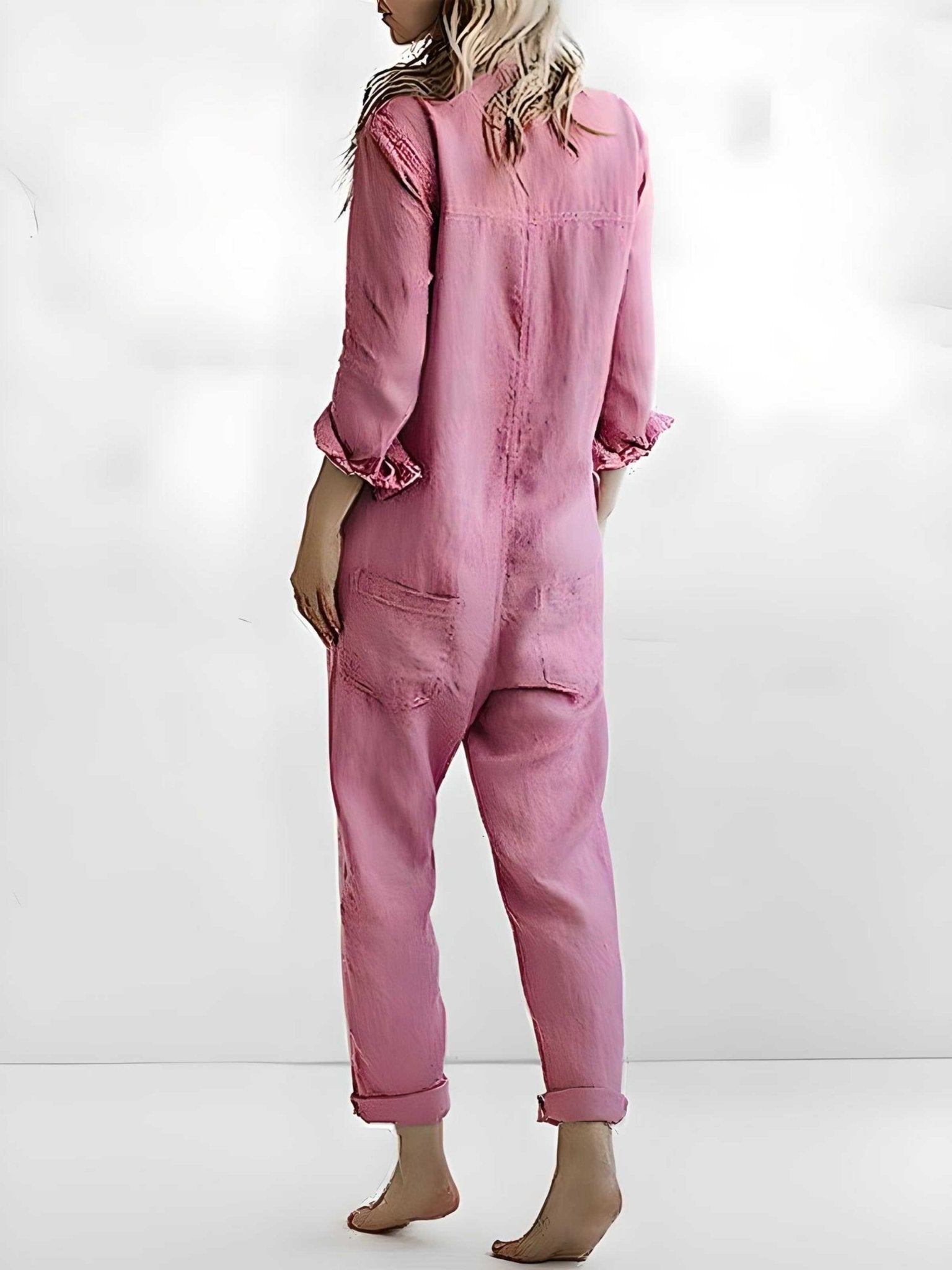 Erlebe mühelose Eleganz mit diesem stilvollen und vielseitigen Jumpsuit. Ob zum entspannten Brunch oder einer schicken Abendveranstaltung – die schlanke Silhouette und der taillierte Schnitt sorgen für einen eleganten Look mit maximalem Komfort. Die langen Ärmel verleihen einen Hauch von Raffinesse, während der weiche, atmungsaktive Stoff dich den ganzen Tag über wohlfühlen lässt.