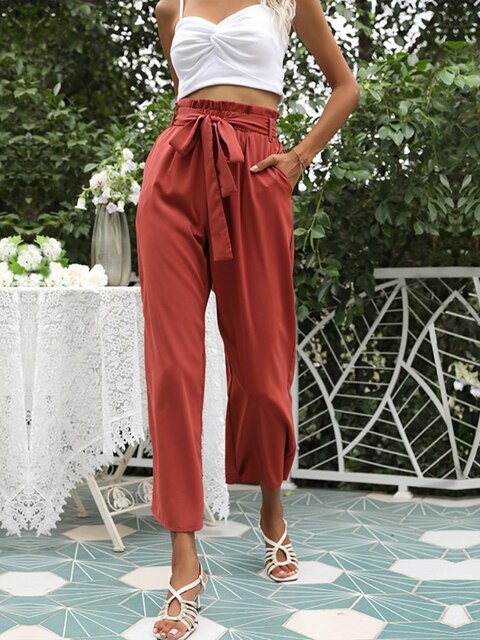Bringen Sie mit dieser Hose einen Farbtupfer in Ihre Ausgehgarderobe. Die aus Crêpe gefertigte Hose aus Papier wird mit einem Gürtel aus eigenem Stoff geliefert, der die Taille akzentuiert.
