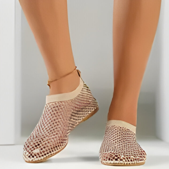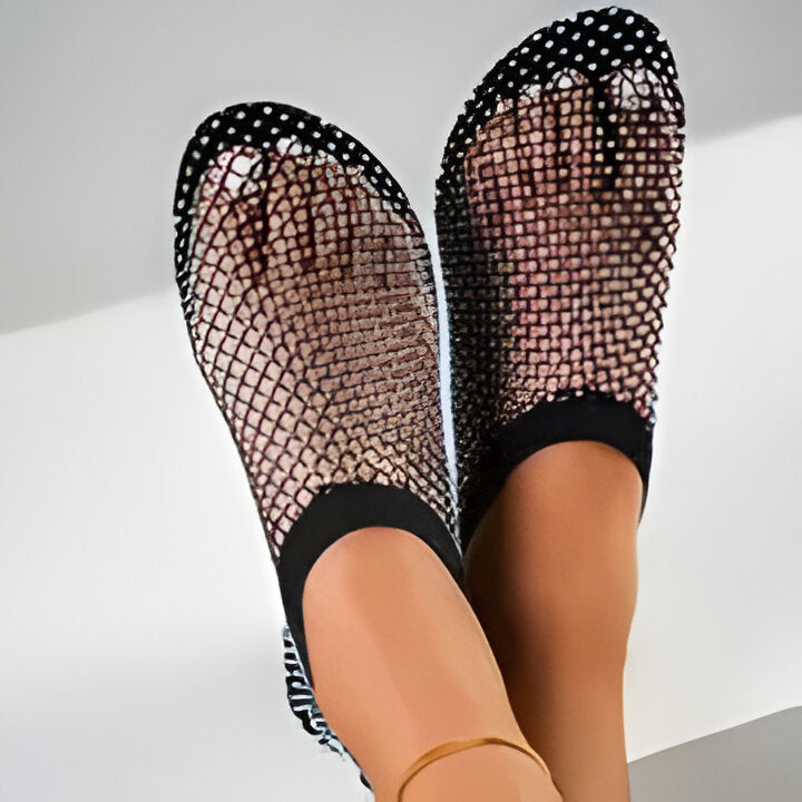 Gönn dir stilvolle Leichtigkeit mit diesen eleganten Slip-On-Flats. Das atmungsaktive Hollow-Out-Design hält deine Füße angenehm kühl, während die zarten Strasssteine jedem Look eine edle Note verleihen. Perfekt für entspannte Spaziergänge, sommerliche Outfits oder stilvolle Alltagsmomente.