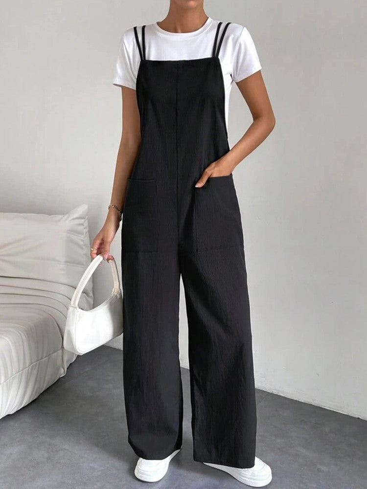 Tauche ein in zeitlosen Stil und unvergleichlichen Komfort mit diesen eleganten schwarzen Overalls. Ihr fließender, weit geschnittener Look und die schicken Doppelträger verleihen dir eine mühelose Eleganz. Ob für einen entspannten Tag, ein Treffen mit Freunden oder kombiniert mit stylischen Accessoires – diese Hose bietet die perfekte Mischung aus Vielseitigkeit und Raffinesse.