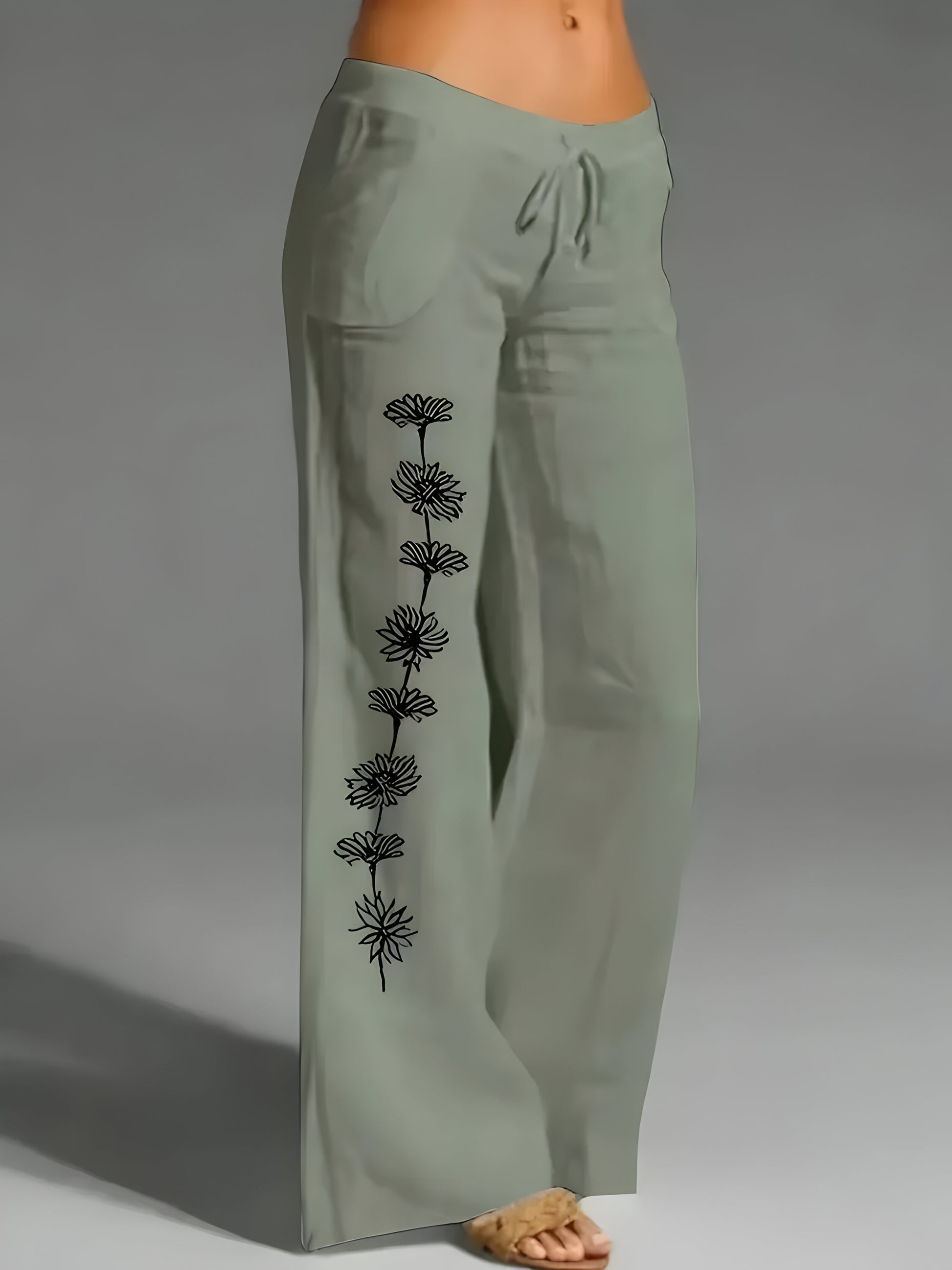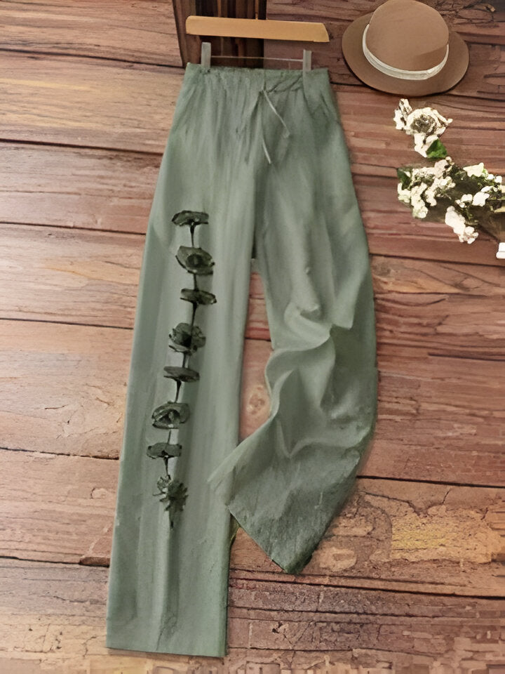 Aubrey | Lange Hose aus bedrucktem Leinen mit Kordelzug für Frauen