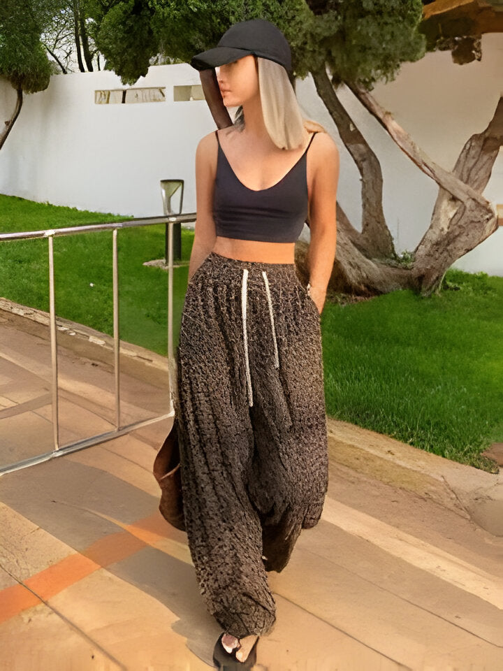 Barbara | Weite Hose mit Leopardenmuster und Kordelzug