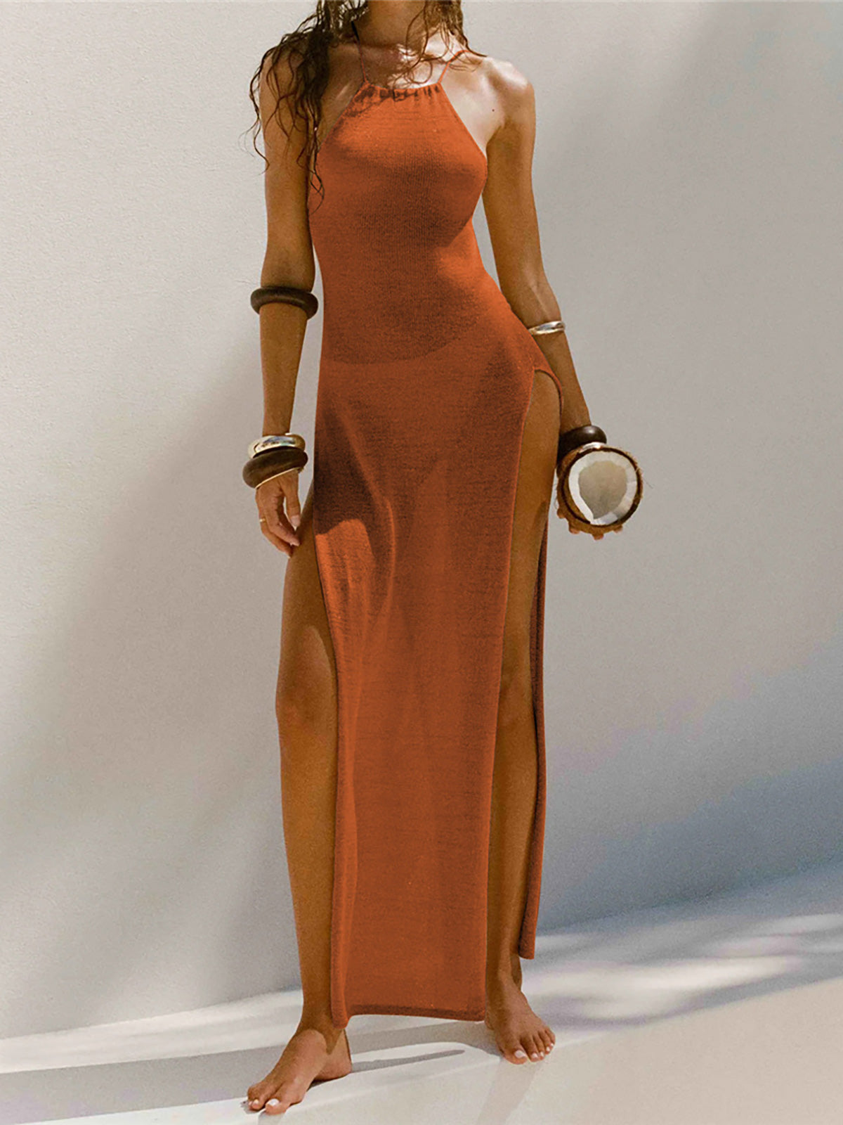 Tauche ein in pure Sommer-Sophistication mit diesem atemberaubenden, hochgeschlitzten Häkel-Maxikleid. Perfekt für Strandurlaube und traumhafte Reisen – der leichte Strickstoff schmiegt sich wunderschön an deine Silhouette und sorgt für einen eleganten, luftigen Look, der alle Blicke auf sich zieht.