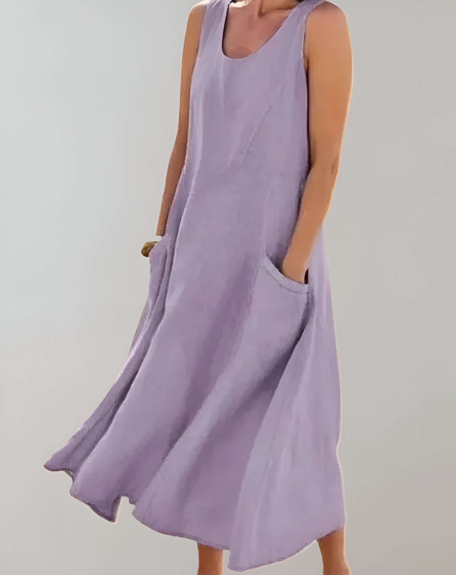 Camila - Locker sitzendes, ärmelloses Midikleid aus Baumwolle mit U-Ausschnitt und Taschendetails