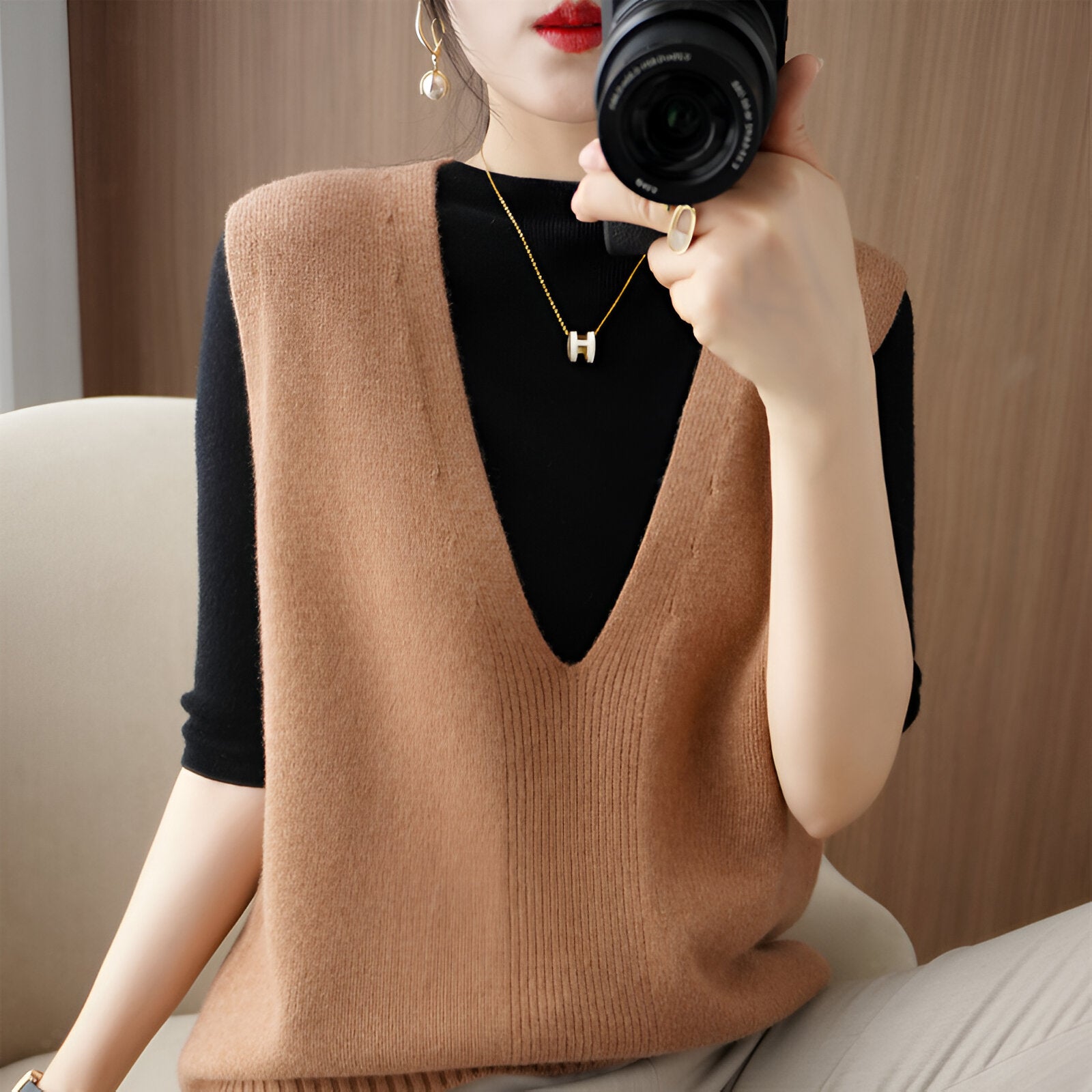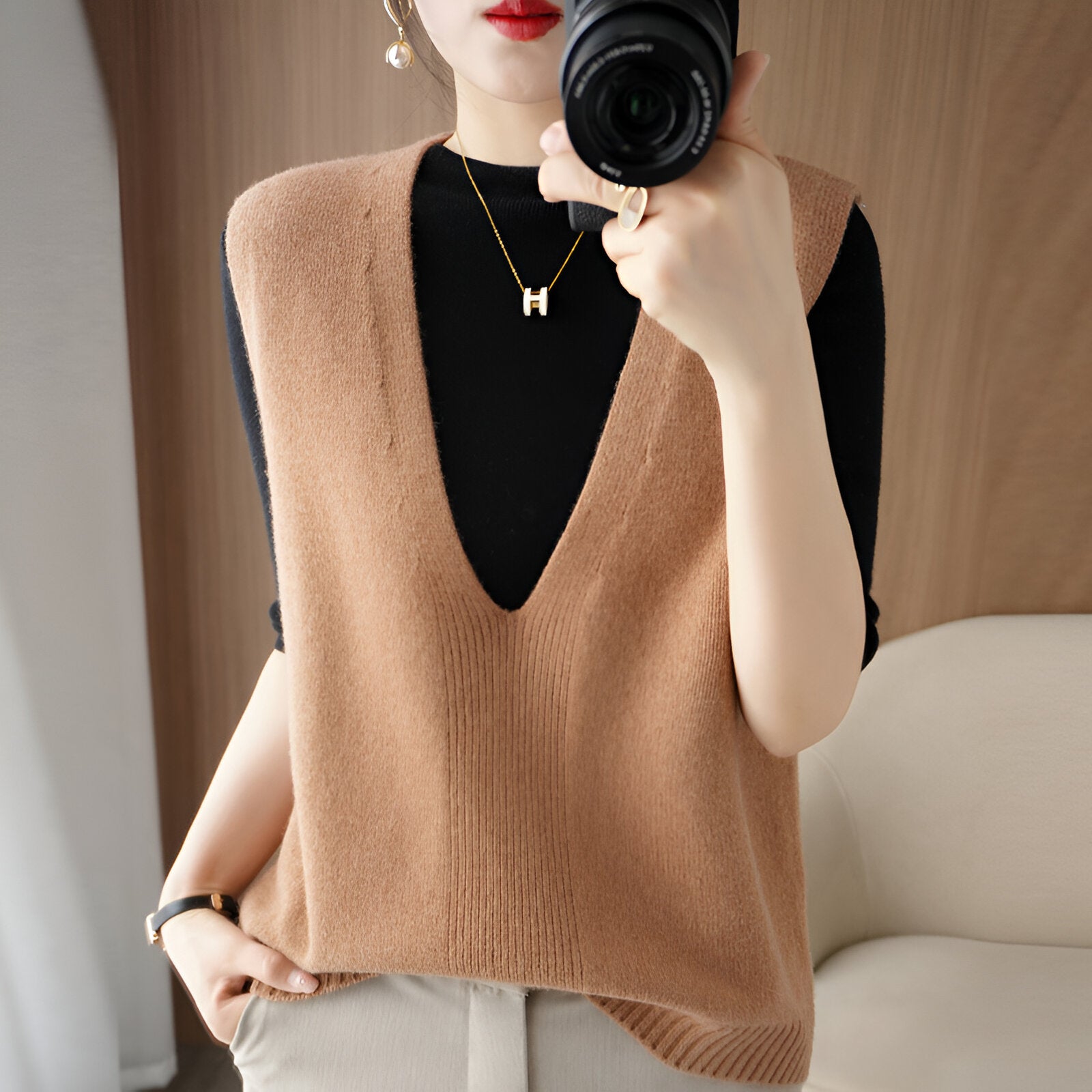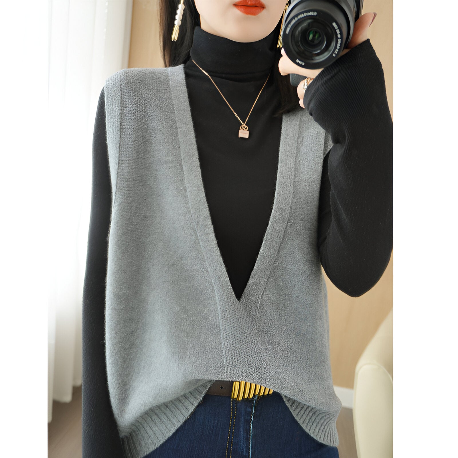 Mit ihrem lockeren Schnitt und dem großen V-Ausschnitt lässt sich diese Strickweste perfekt mit allem kombinieren – Jeans, Röcken oder sogar über einem Kleid. Die einfarbige Farbe macht es einfach, sie mit deinen Lieblingsoutfits zu kombinieren und sofort Eleganz hinzuzufügen.