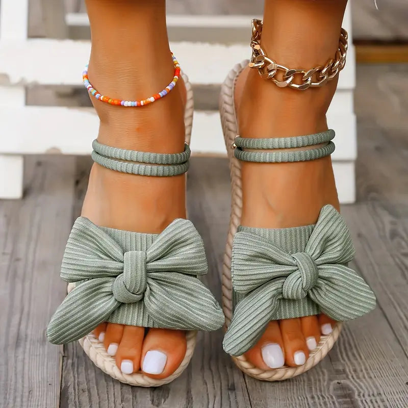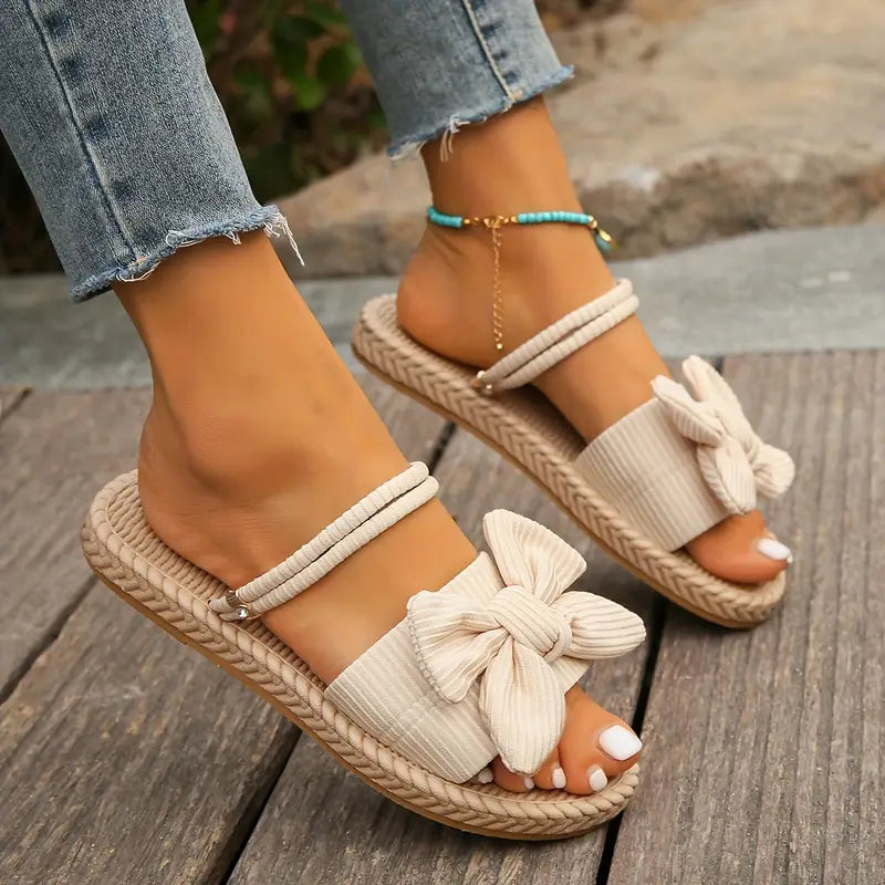 Schlüpfe in Komfort und Stil mit diesen Flip-Flops mit charmantem Schleifendetail. Perfekt für sonnige Tage – sie bieten ein leichtes Tragegefühl und ein praktisches Slip-on-Design, ideal für Strandtage, entspannte Spaziergänge oder den Alltag.