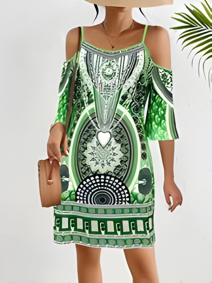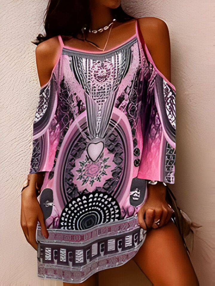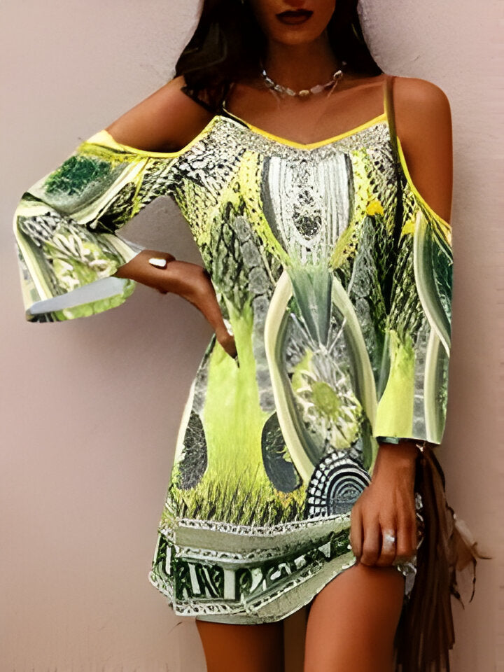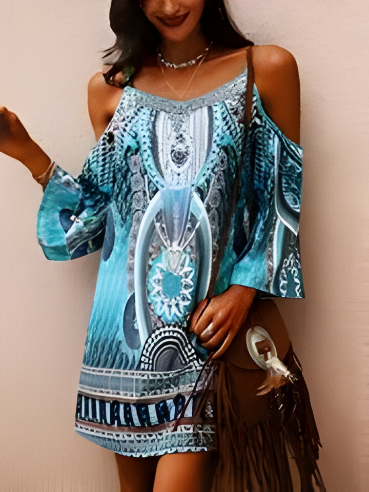 Daisy | Trägerloses, ärmelloses, böhmisches Tunikakleid mit V-Ausschnitt