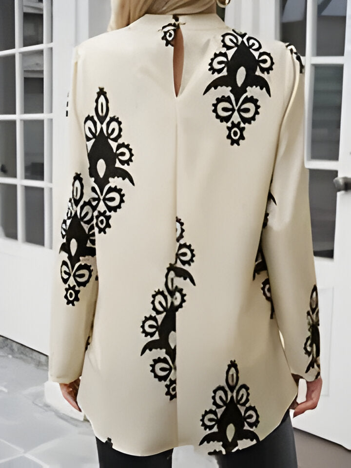 Genieße einen stilvollen und vielseitigen Look mit dieser wunderschön designten Bluse. Der raffinierte Lagen-Look und der elegante bedruckte Kragen verleihen dir eine edle, aber dennoch entspannte Ausstrahlung – perfekt für das Büro, den Alltag oder besondere Anlässe. Ob mit Jeans für einen legeren Look oder mit einer Stoffhose für mehr Eleganz – dieses Oberteil sorgt dafür, dass du dich selbstbewusst und stilvoll fühlst.