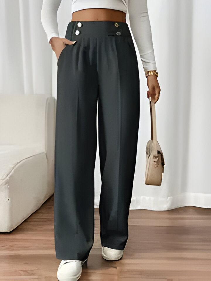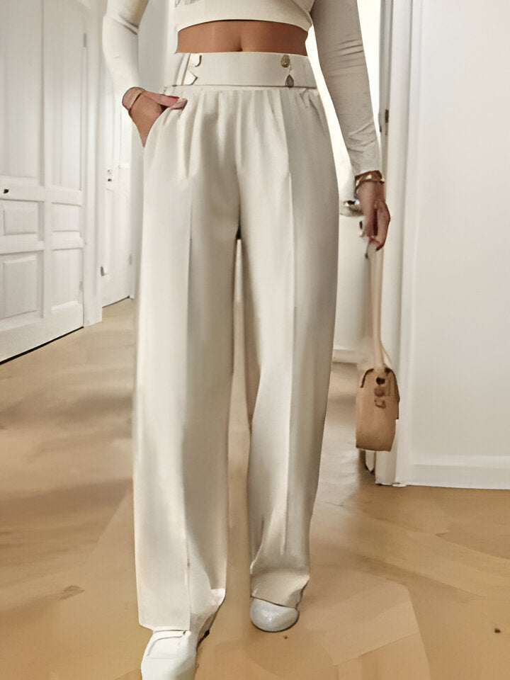 Abigail - Elegantes Zweiteiler-Set mit Bluse mit Knöpfen und weiten Hosen