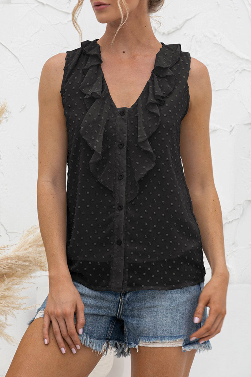 Jessica - Casual-Top ohne Ärmel mit V-Ausschnitt und Knöpfen