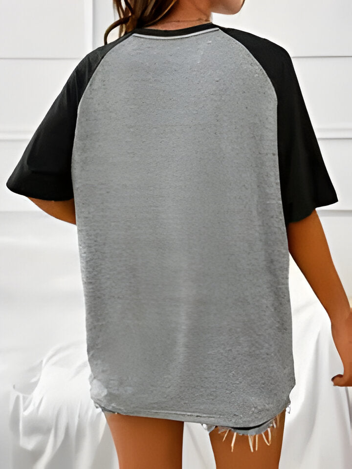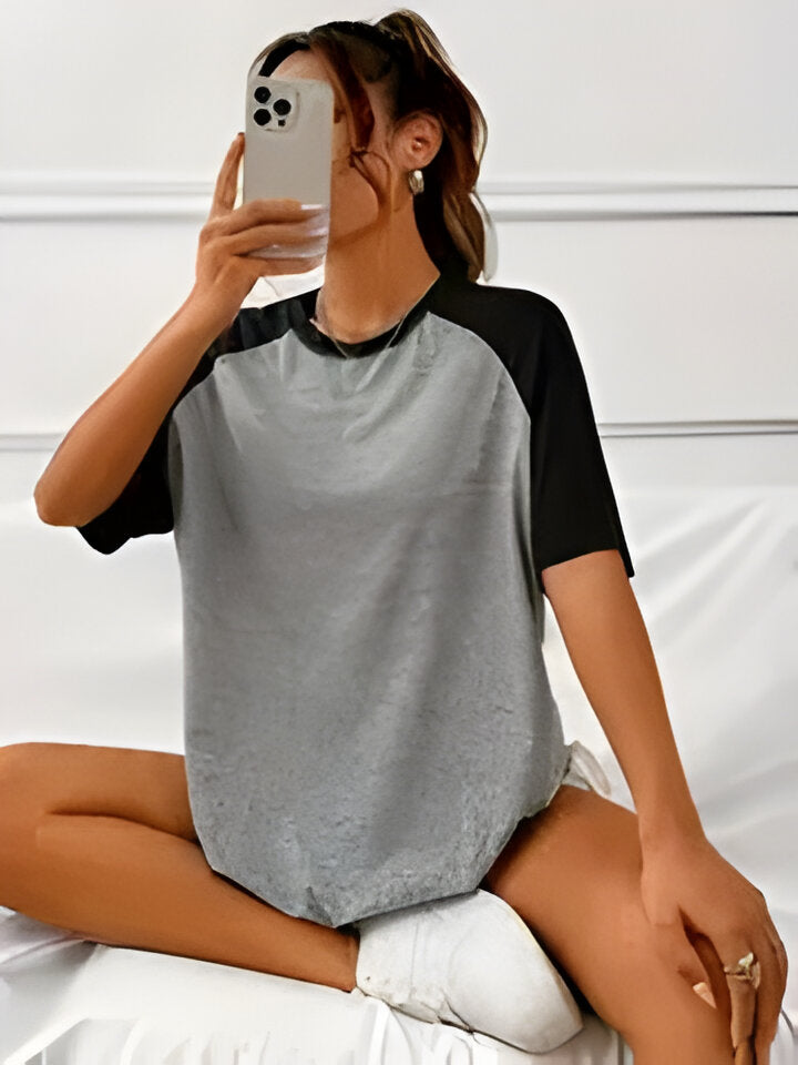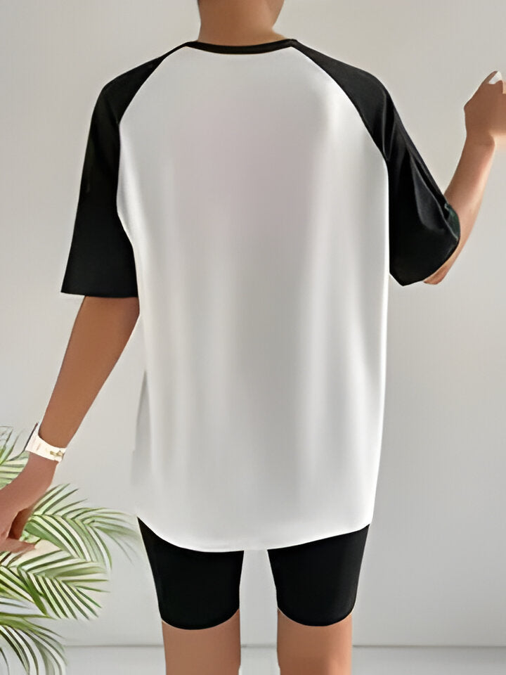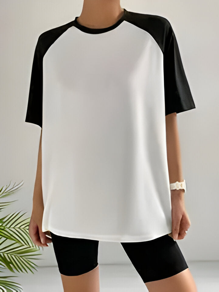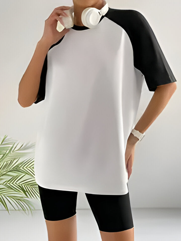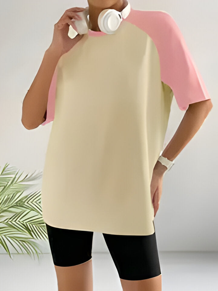 Bleib stylisch und bequem, egal ob beim Workout oder im Alltag. Dieses locker geschnittene Athleisure-Shirt kombiniert ein trendiges Colorblock-Design mit einer entspannten Passform – perfekt für sportliche Aktivitäten oder einen lässigen Look. Trage es mit Leggings für ein aktives Outfit oder mit Jeans für einen entspannten, sportlichen Vibe.