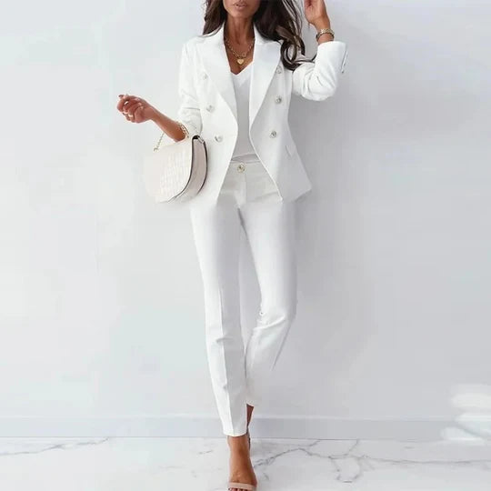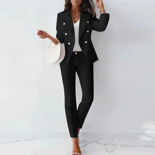 Abigail - Elegantes Zweiteiler-Set mit Bluse mit Knöpfen und weiten Hosen
