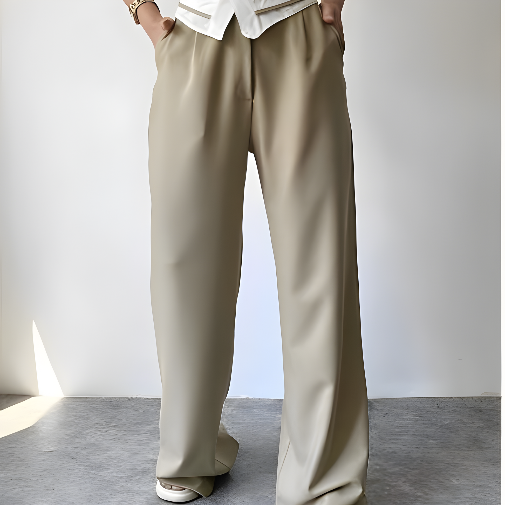 Steige ein in zeitlose Eleganz und höchsten Tragekomfort mit dieser hochtaillierten, weit geschnittenen Hose. Perfekt für die moderne Frau, vereint sie stilvolle Raffinesse mit alltagstauglichem Komfort – ideal für das Büro, ein entspanntes Brunch-Date oder einen stilvollen Abend.