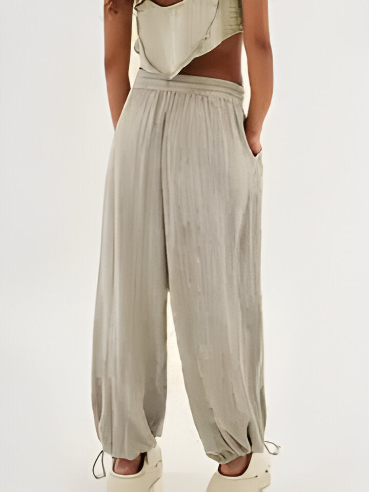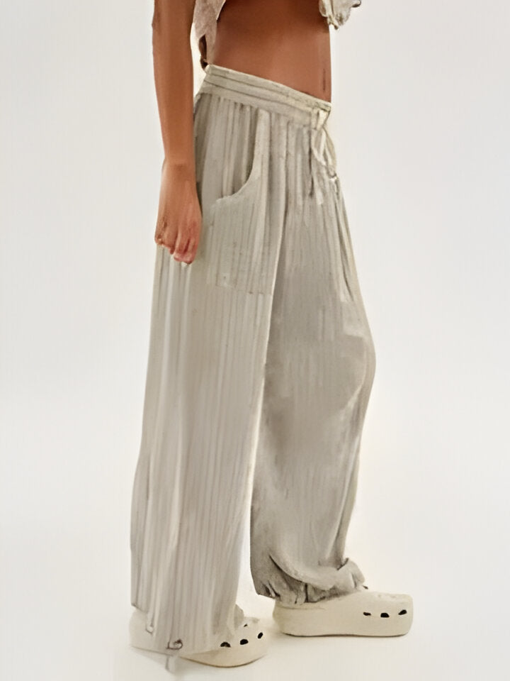 Erlebe entspannte Raffinesse mit dieser stilvollen, weit geschnittenen Hose. Perfekt für einen lässigen Tag, einen modischen Urlaubslook oder einfach zum entspannten Loungen mit Stil.