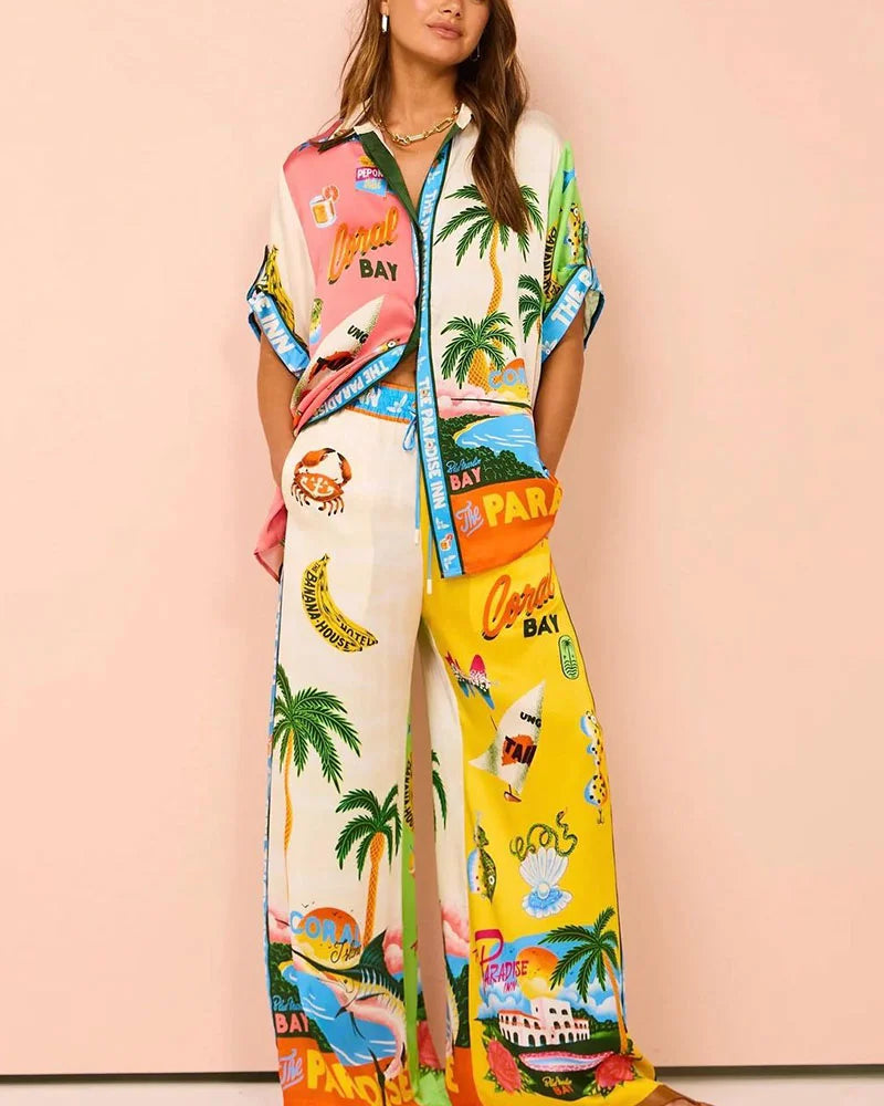 Abigail - Elegantes Zweiteiler-Set mit Bluse mit Knöpfen und weiten Hosen