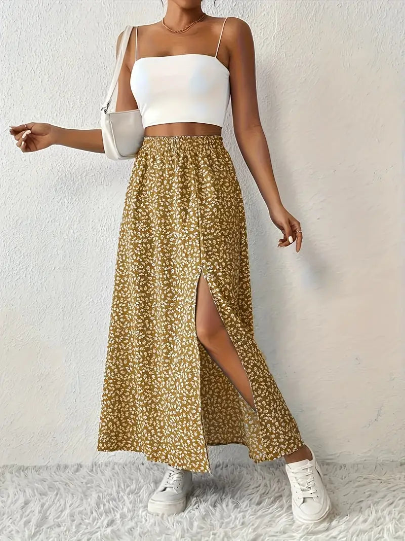 Maria | Floral bedruckter Maxirock mit hochtailliertem Design und Seitenschlitz