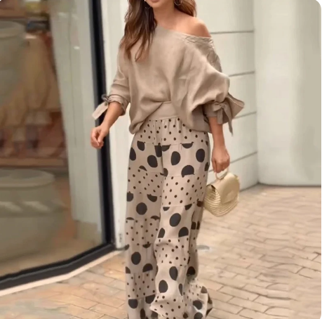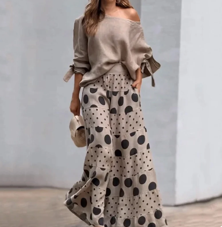 Abigail - Elegantes Zweiteiler-Set mit Bluse mit Knöpfen und weiten Hosen