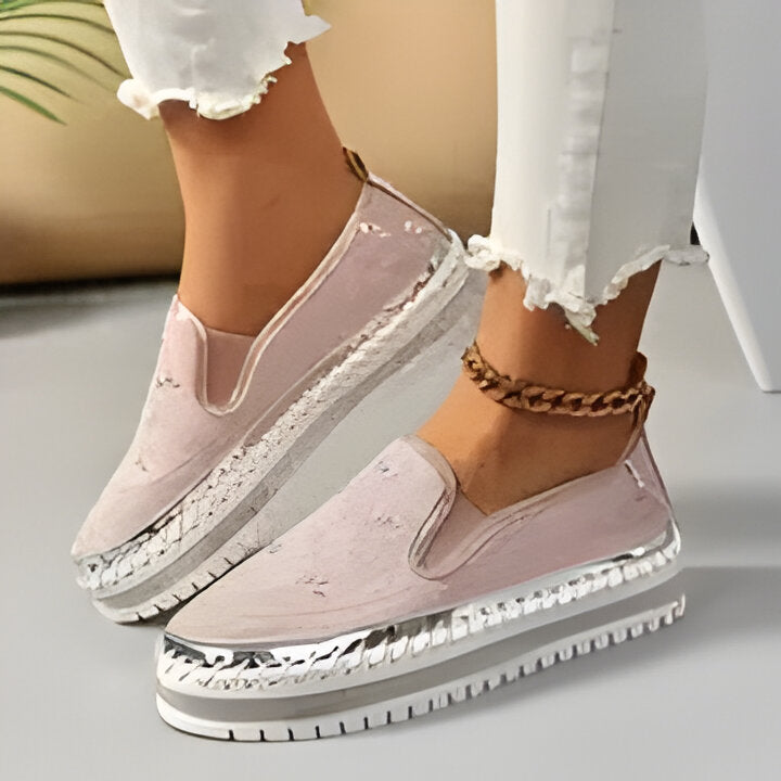 Das elegante pinke Glitzer-Finish, die vielseitige Plateausohle und das pflegeleichte Kunstleder machen diese Loafer zum perfekten Begleiter – von Casual-Jeans bis hin zu schicken Kleidern.
