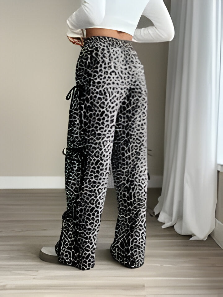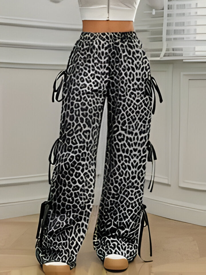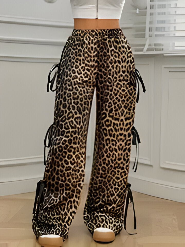 Tritt selbstbewusst auf mit diesen eleganten, weit geschnittenen Hosen, die Stil und Komfort perfekt vereinen. Der trendige Leopardenprint verleiht deinem Look eine kühne Note, während die seitliche Schleife für eine feminine Eleganz sorgt – ideal, um überall einen bleibenden Eindruck zu hinterlassen.