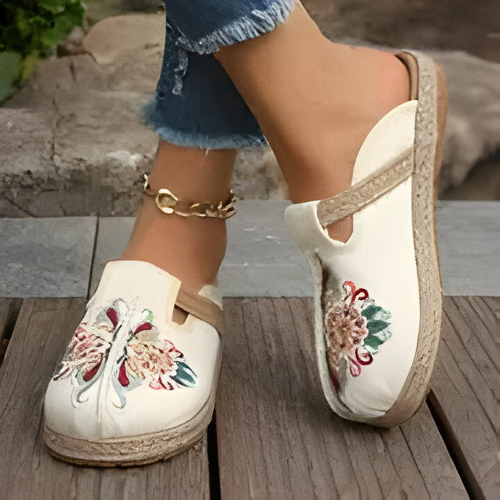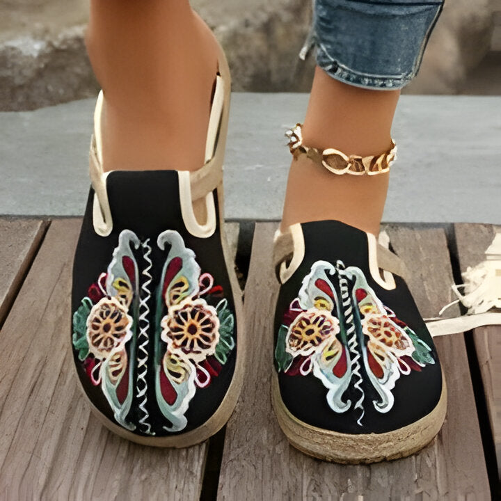Milan | Boho-Chic Gestickte Blumen Espadrille Flats für Frauen