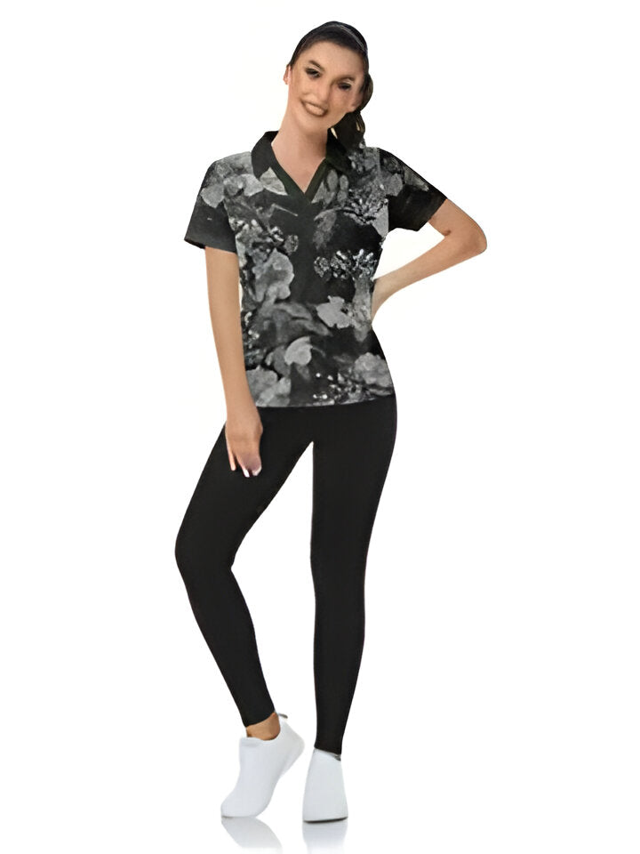 ✔ Femininer V-Ausschnitt und stilvolles Blumenmuster für einen sportlich-eleganten Look.