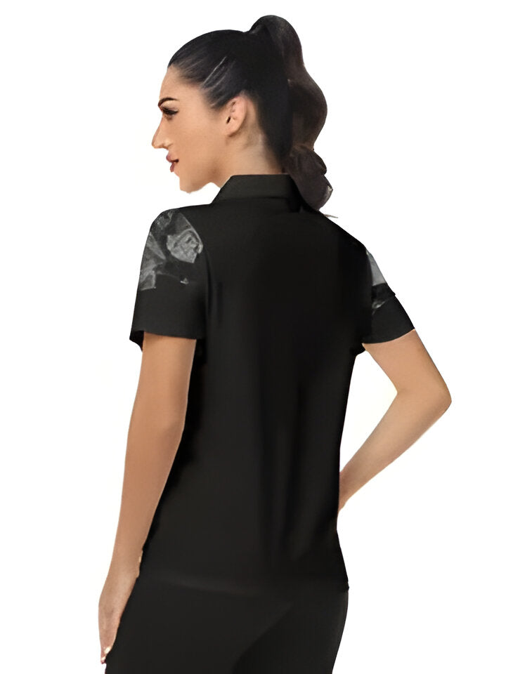 Bewege dich mit Selbstbewusstsein und Stil – dieses florale Tennis-Shirt vereint Komfort und Funktionalität. Das leichte, atmungsaktive Material hält dich angenehm kühl, egal ob auf dem Platz oder in der Freizeit. Der V-Ausschnitt und die schmeichelnde Passform sorgen für eine perfekte Mischung aus Sportlichkeit und Eleganz.