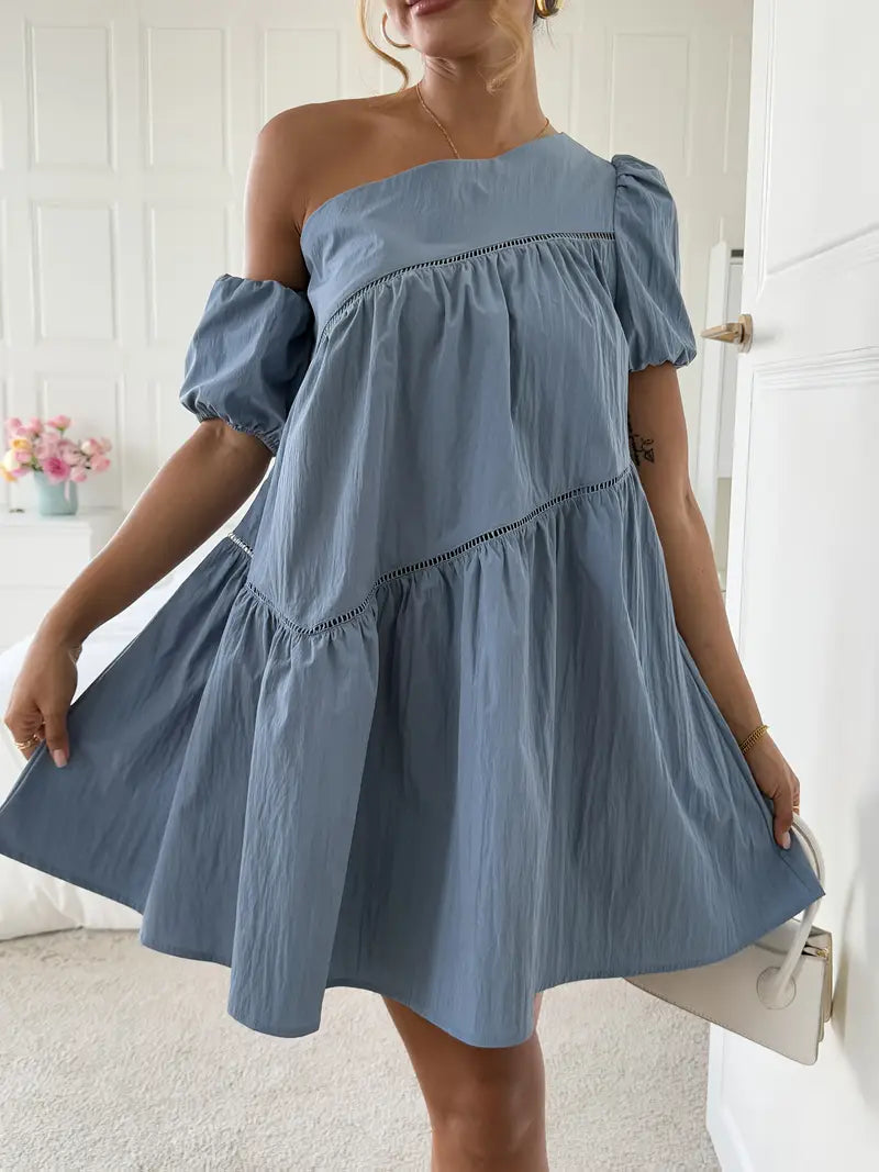 Stell dir vor, du betrittst einen Raum, alle Blicke sind auf dich gerichtet und du spürst das Scheinwerferlicht auf dir – in dem Saoirse Off-Shoulder Ruffle Dress. Mit seinen markanten, asymmetrischen Kurzärmeln und eleganten Rüschendetails ist dieses Kleid mehr als nur ein Outfit – es ist ein Statement. Perfekt für jedes Frühlings- oder Sommer-Event, vereint es mühelos schicke Raffinesse mit einem verspielten Touch.