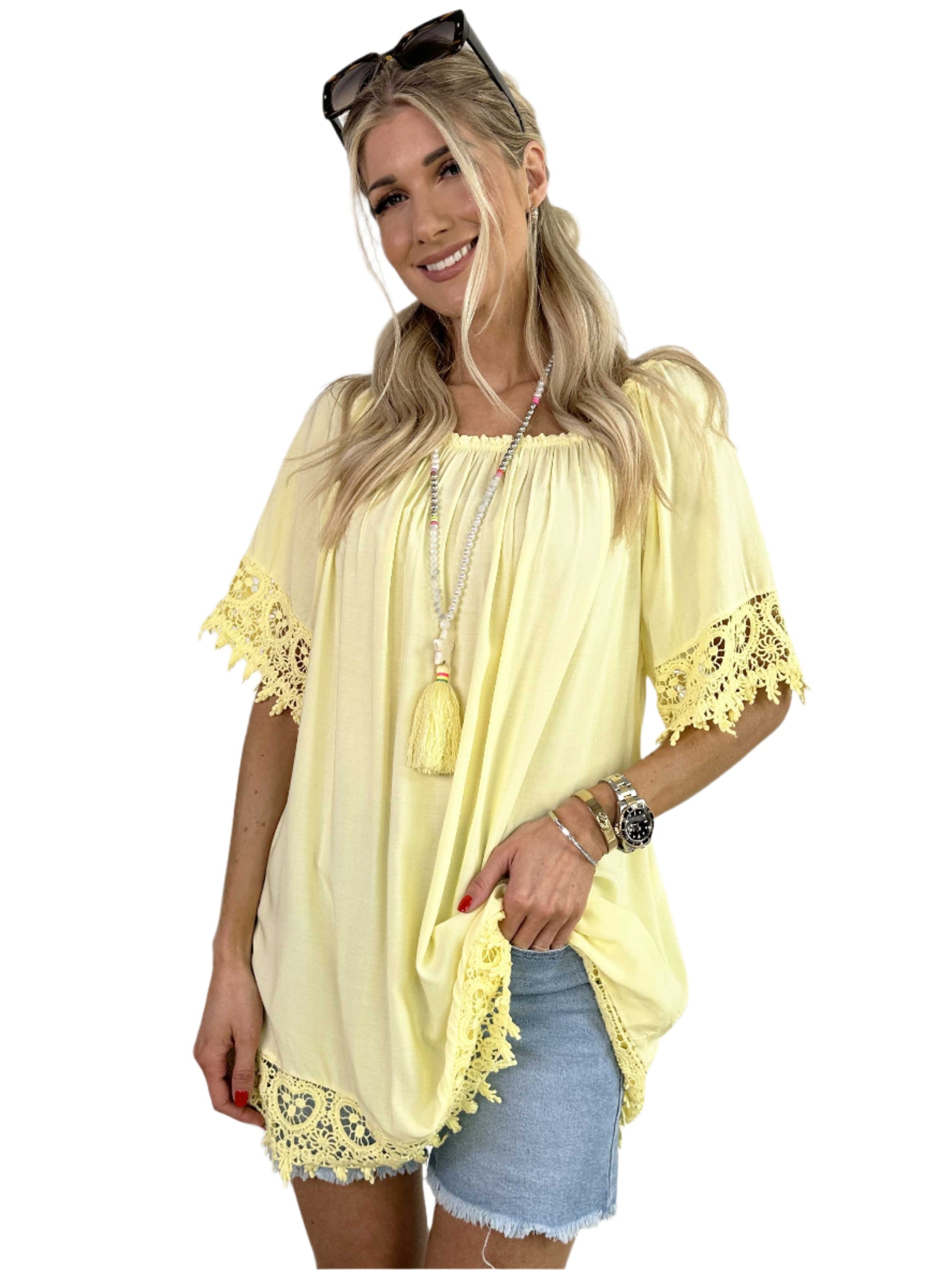 Terry - Feminines Tunika-Top mit Spitzenbesatz