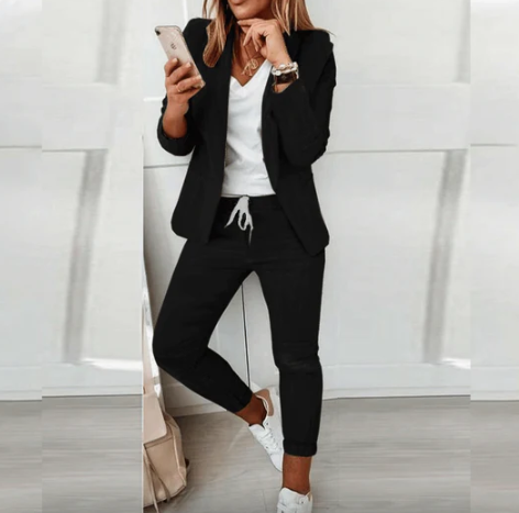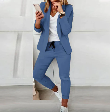 Abigail - Elegantes Zweiteiler-Set mit Bluse mit Knöpfen und weiten Hosen
