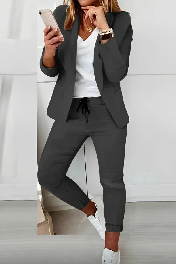 Stell dir ein Outfit vor, das sich mühelos jedem Moment deines Tages anpasst – egal, ob du einen entspannten Brunch, dich zu Hause wohlfühlst oder bei einem Geschäftstermin Eindruck machst. Dieses Damen-Set bietet den ganzen Tag über Komfort mit atmungsaktiven, weichen Materialien und einem zeitlosen Design, sodass du bei jeder Gelegenheit und Wetterlage stilvoll aussiehst.