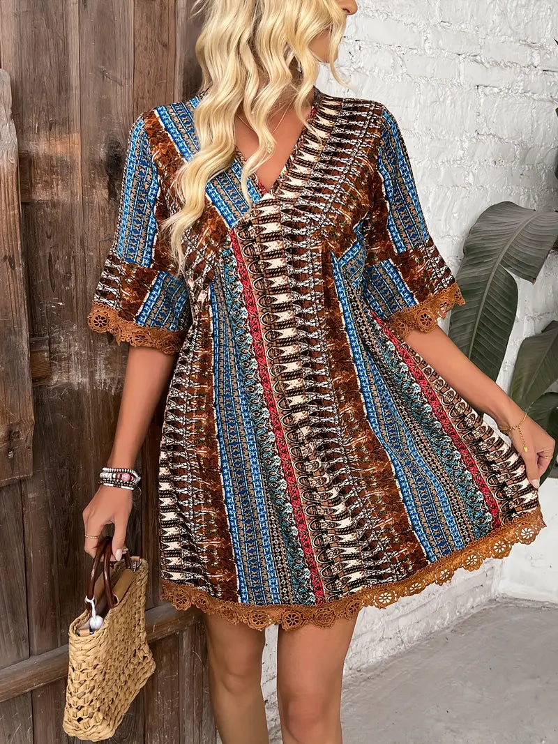 Tauche ein in zeitlose Raffinesse mit diesem eleganten V-Ausschnitt-Midikleid, das dich mühelos selbstbewusst fühlen lässt. Die zarten Spitzendetails und das edle geometrische Muster vereinen klassischen Charme mit moderner Eleganz. Perfekt für festliche Anlässe, romantische Abende oder besondere Events – dieses Kleid lässt dich immer stilvoll erstrahlen.