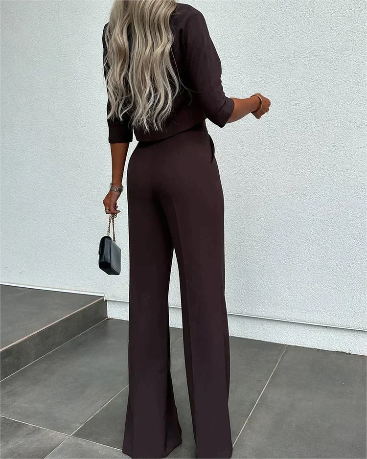 Abigail - Elegantes Zweiteiler-Set mit Bluse mit Knöpfen und weiten Hosen