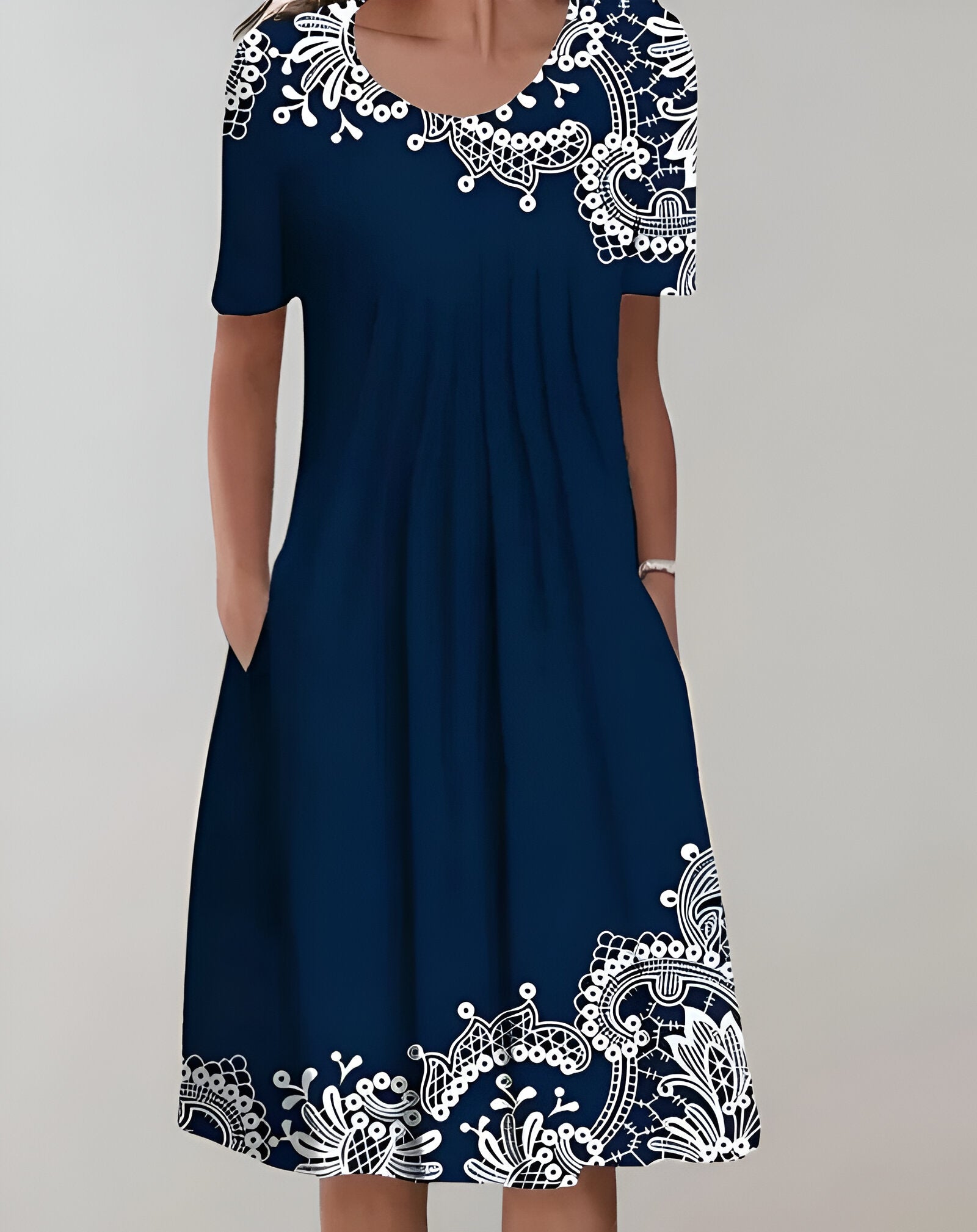 Dieses lockere, florale Midikleid mit praktischen Taschen verleiht Ihrer Garderobe einen Hauch von zeitloser Eleganz. Egal, ob Sie zum Brunch, ins Büro oder einfach nur entspannt unterwegs sind – mit diesem Kleid sehen Sie immer gut aus und fühlen sich wohl.