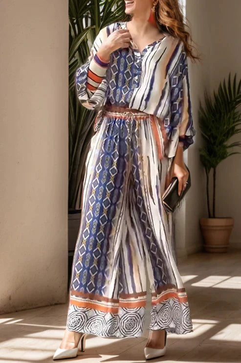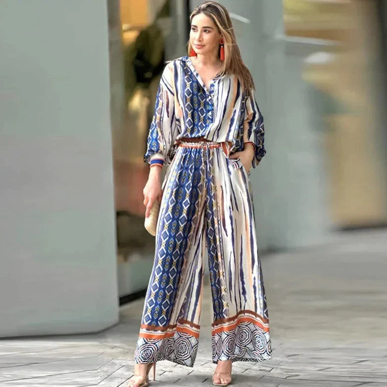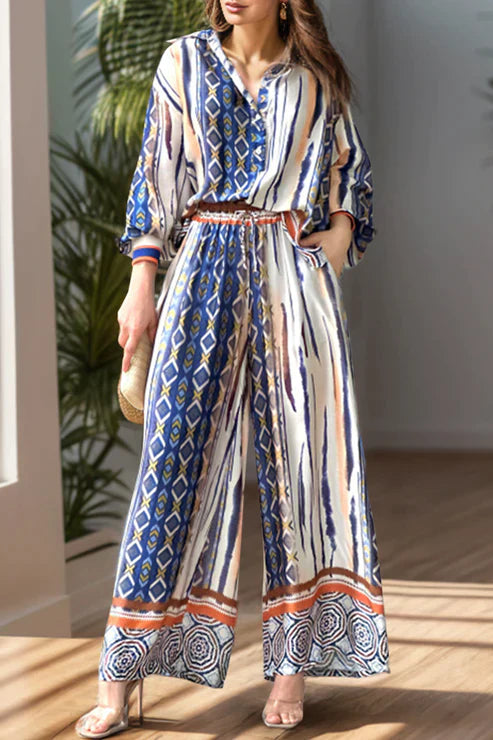 Abigail - Elegantes Zweiteiler-Set mit Bluse mit Knöpfen und weiten Hosen
