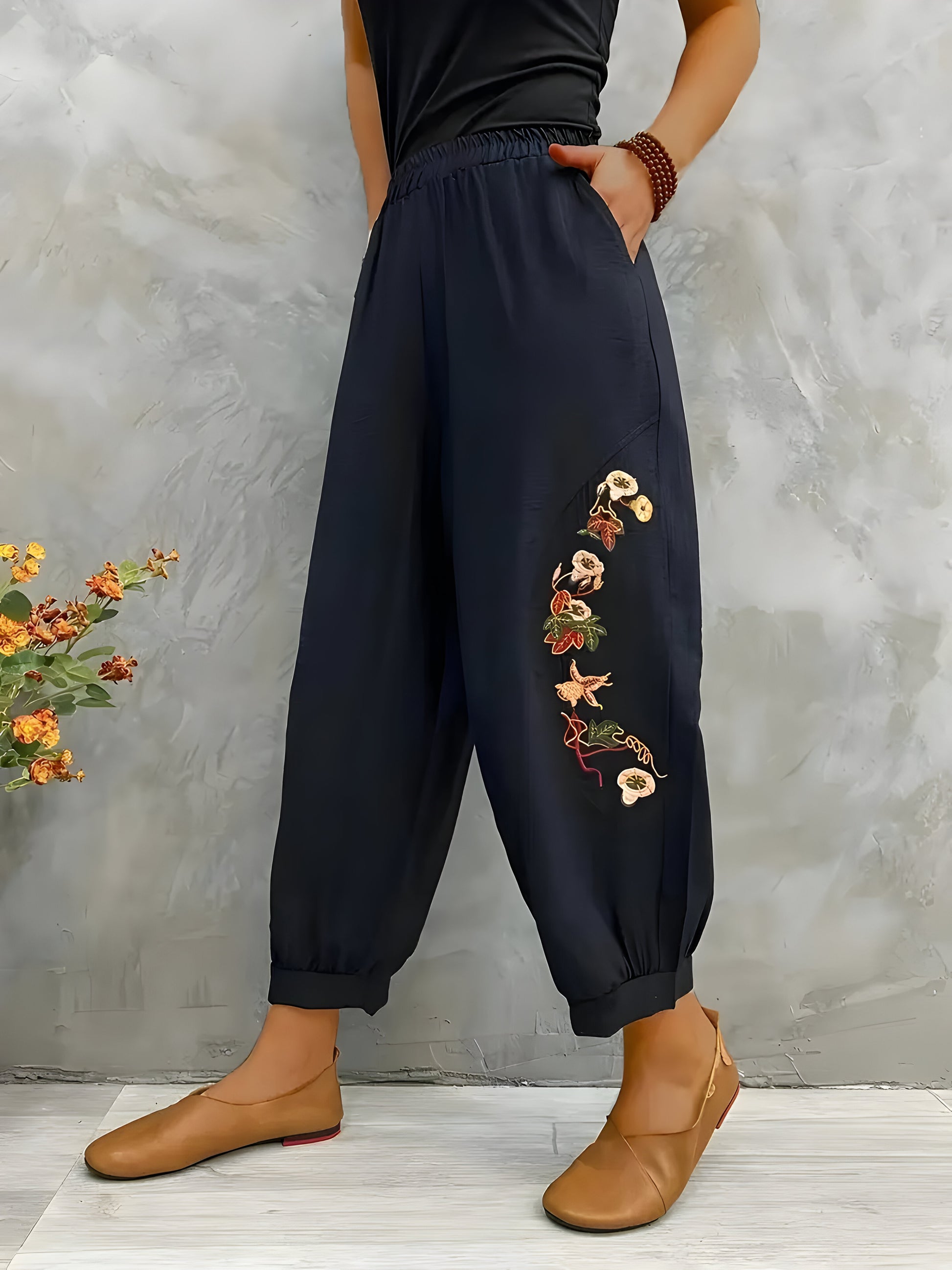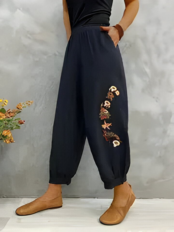 Zenaida | Schicke, floral bestickte Freizeithose für Frauen